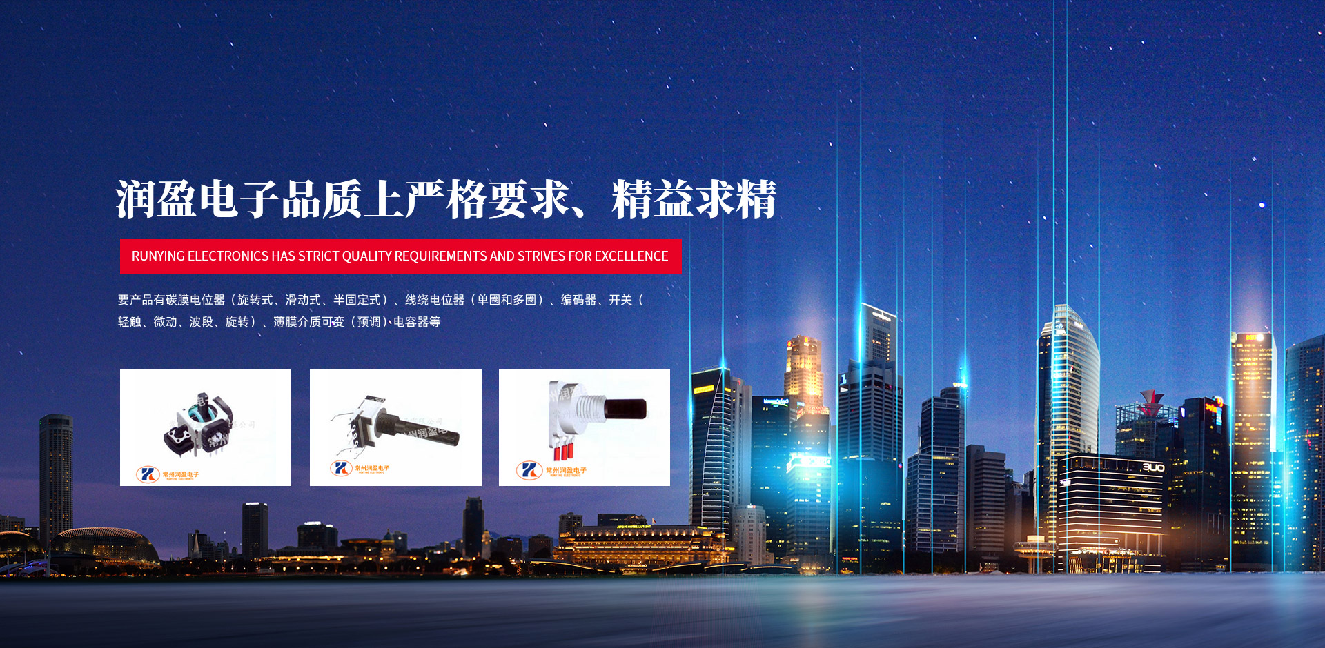 常州潤(rùn)盈電子有限公司成立以來,從事編碼器、電位器、電子開關(guān)的研發(fā)和制造。公司總部設(shè)立在江蘇省常州市禮嘉鎮(zhèn)。常州潤(rùn)盈電子有限公司擁有完整、科學(xué)的質(zhì)量管理體系,采用先進(jìn)的加工設(shè)備、精密的檢測(cè)儀器、高能的組裝生產(chǎn)線,在品質(zhì)上嚴(yán)格要求、精益求精,在團(tuán)隊(duì)管理上以人為本、精細(xì)管理,以此來確保本公司為客戶提供的優(yōu)良產(chǎn)品和服務(wù)。隨著公司業(yè)務(wù)的國(guó)際化,公司產(chǎn)品全部達(dá)到“ROHS”指令要求。公司現(xiàn)在主要產(chǎn)品有碳膜電位器(旋轉(zhuǎn)式、滑動(dòng)式、半固定式)、線繞電位器(單圈和多圈)、編碼器、開關(guān)(輕觸、微動(dòng)、波段、旋轉(zhuǎn))、薄膜介質(zhì)可變(預(yù)調(diào))電容器等。我們始終堅(jiān)持“效率成就品牌,誠(chéng)心鑄就未來”的宗旨。不斷創(chuàng)新是企業(yè)得以生存的動(dòng)力,潤(rùn)盈電子期待與您的合作!